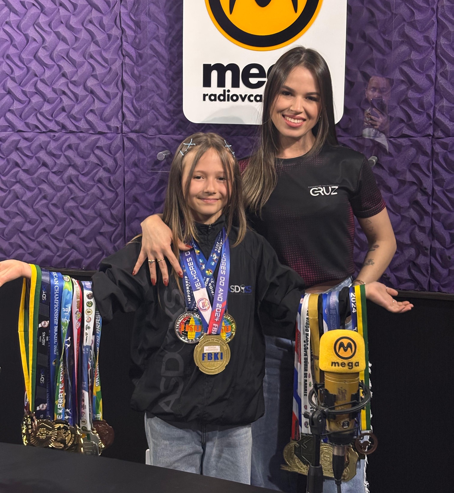 Nesta sexta-feira (26), o Giro Esportivo recebeu a campeã mundial de karatê, Laysa Lebrão, de apenas 10 anos de idade, e a professora de muay thai e sócia do CT Cruz, Thais Lebrão. Além de campeã mundial no esporte, Laysa também é bicampeã nacional e tricampeã estadual na arte marcial.