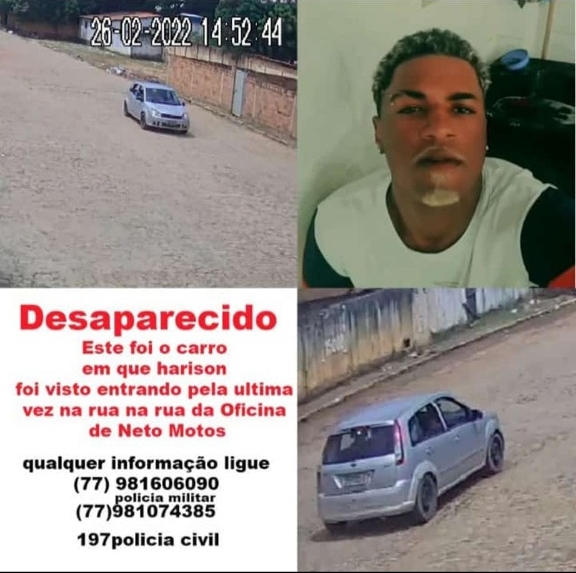Quem tiver alguma informação que ajude a localizar Harison, pode entrar em contato com a família através do número (77) 981074385 ou (77) 981606090 ou 197.