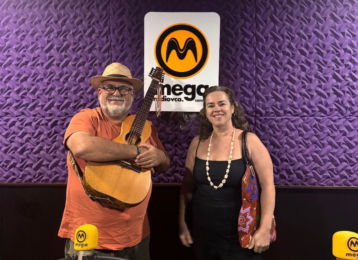 Da esq. à dir.: Levi Ramiro, conhecido nacionalmente pelo trabalho com a viola caipira e por montar os seus próprios instrumentos, e Leu Couto, gestora do espaço Lá Brincante e produtora cultural. Foto: Ane Xavier.