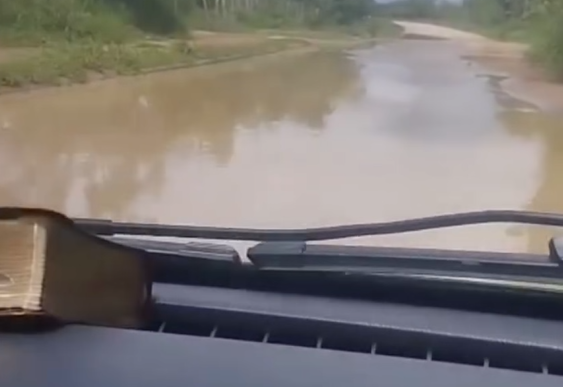 O trecho, que funciona como rota alternativa e ajuda a desafogar o trânsito na região da Olívia flores em diversos condomínios, sofreu novos danos com o grande volume de água e apresenta riscos para quem tenta passar pelo local.