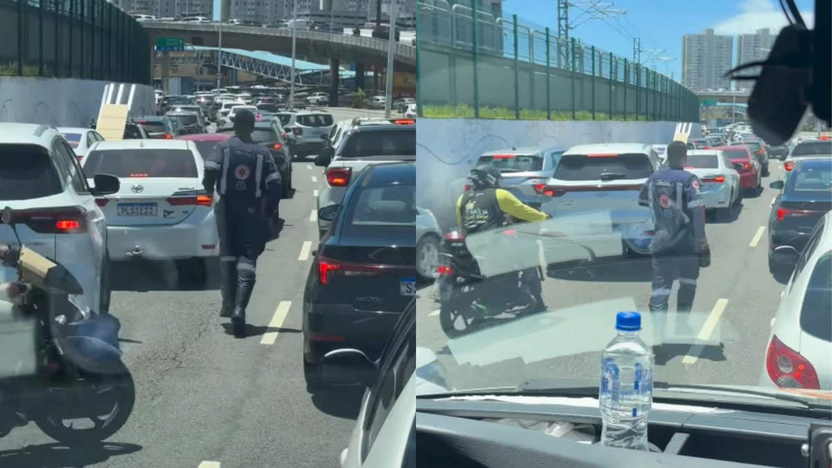 O episódio ocorreu na Avenida Tancredo Neves, nas imediações da estação de metrô Pernambués, na última sexta-feira (19). Mesmo com sirene e luzes de alerta acionadas, o veículo de socorro encontrou dificuldades para avançar entre os carros, o que levou o médico a agir fora do veículo para organizar manualmente o fluxo dos motoristas.