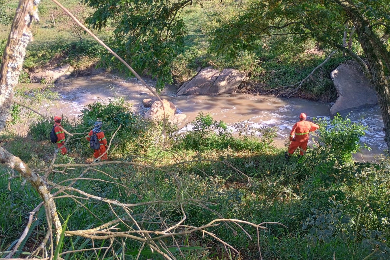• No período da tarde, as buscas avançaram até o ponto de encontro entre o Rio Verruga e o afluente proveniente da Barragem Beija-Flor.